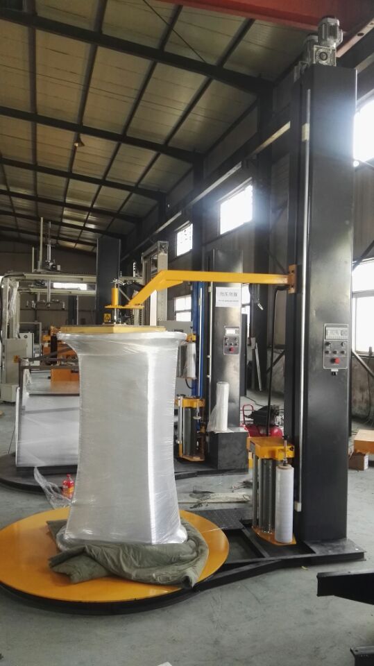 一般纏繞機的上方都有一個旋鈕,是用來調理纏繞機膜架上送膜膠輥的摩擦力的,調整纏繞機的膜張力的話,控制面板上有一個張力調理旋鈕,順時針方向調整,張力值就添加,膜的拉伸程度就越大,反之就越小。通過調理纏繞機輸出電機的速度,進而調理與轉盤速度的差速來調理張力,阻拉伸纏繞機是調理拉伸膠輥的阻力來調理張力,沒有張力調理按鈕,預拉伸纏繞機應該配合轉盤速度來調理,而阻拉伸機器則不必。