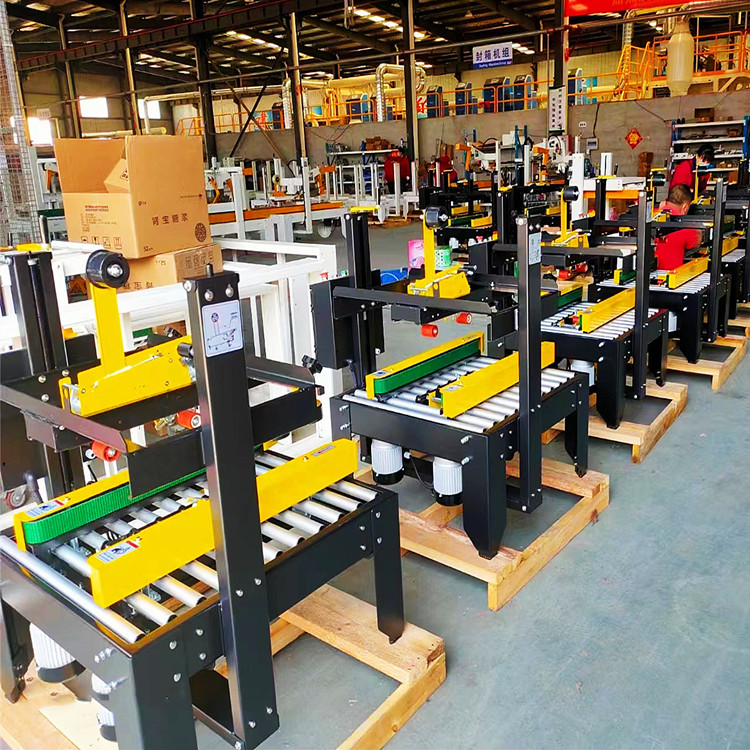 ? ? ? 什么是膠帶封箱機?膠帶封箱機就是用透明或印字膠帶給紙箱或泡沫箱等封口包裝的機器,可以單獨使用,也可和其它機器搭配成自動化輸送線使用。